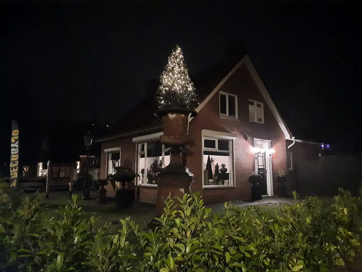 Zo'n grote vaas van wel 3 meter hoog heb je vast nog niet zo vaak gezien! Maar dat er dan ook nog een prachtig verlichte kerstboom vol met ballen op mag staan pronken is toch helemaal een mooi gezicht.