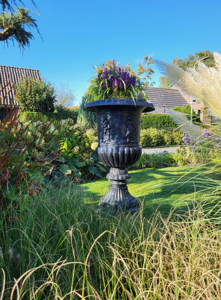 Die Vase ist 1,30 cm hoch und ein echter Blickfang für Ihr Haus oder Ihren Garten.