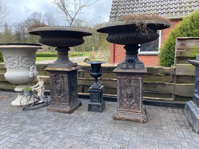 Sehr große Schalenvase aus Gusseisen auf Sockel